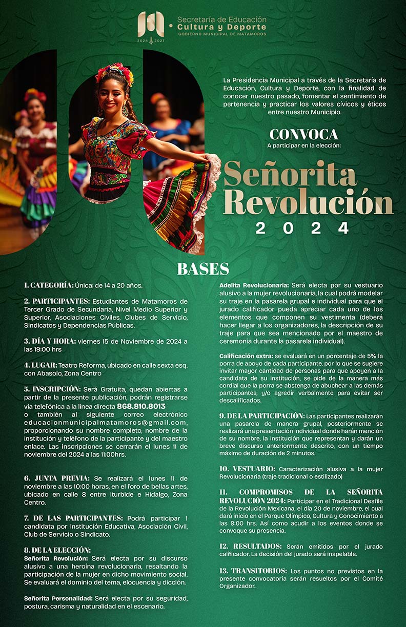 Convocatoria para Señorita Revolución y el Desfile del 20 de Noviembre, edición 2024